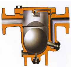 | 4 当凝结水停止进入疏水阀时,浮球随液位下降关闭阀口(B),由于阀口(B)总是在凝结水液位以下,形成水封,无蒸汽泄漏。